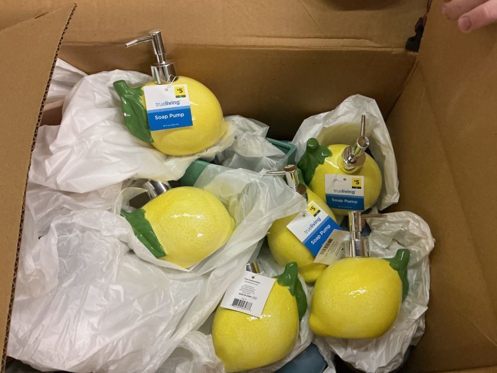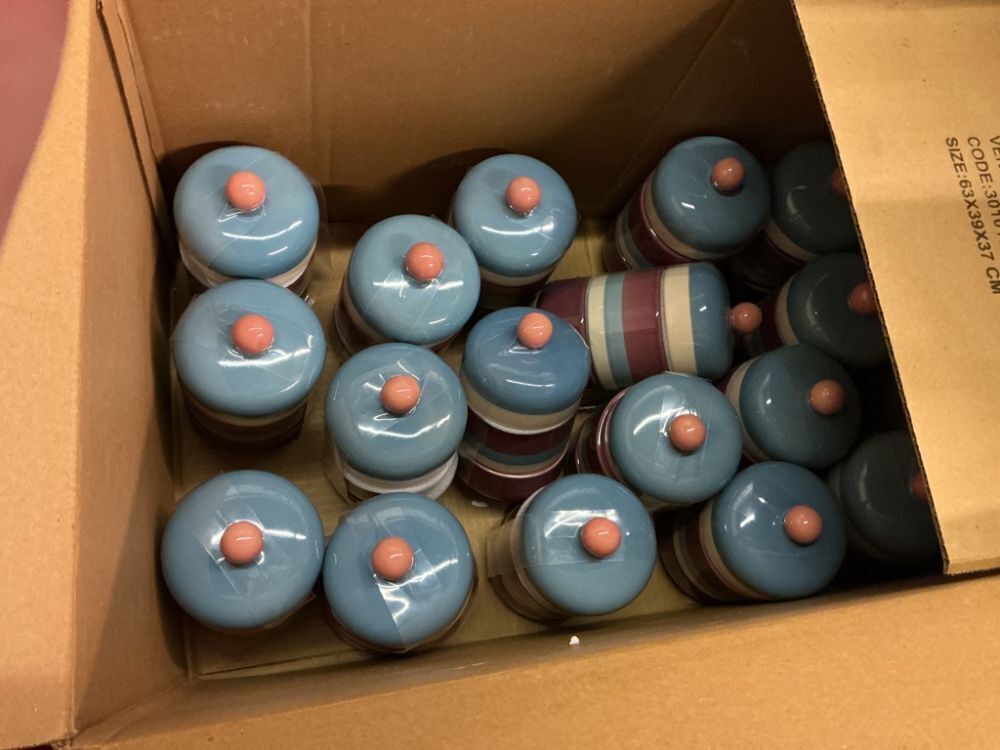 Lot Of Ceramic Jungalow Tiered Canisters, Flower Pots, Lemon Soap Dispensers, New
