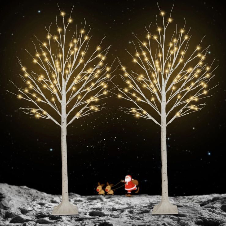2 Pack 5FT 200LED Christmas Lighted Birch Tree, Timer Function Prelit Artificial Tree Lamp Plug in with Warm White Lights, 2 Modes Twinkling Twig Trees for Indoor Outdoor Party Christmas Decorations