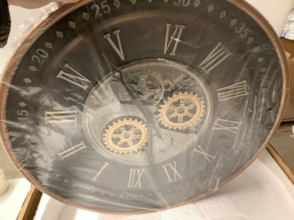CLXEAST 24 Inch Wall Clock with Moving Gears,Oversized Large Industrial Steampunk Clock, Antique Gold Metal Roman Numeral Wall Clock