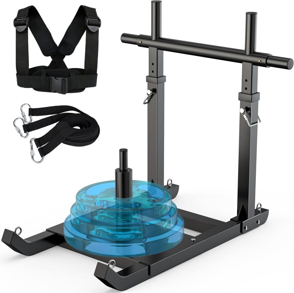 Weight Sled for Push & Pull Training, Heavy-Duty Fitness Sled with 5 Adjustable Handles, Improves Speed and Strength, Fits 1" & 2" Weight Plates