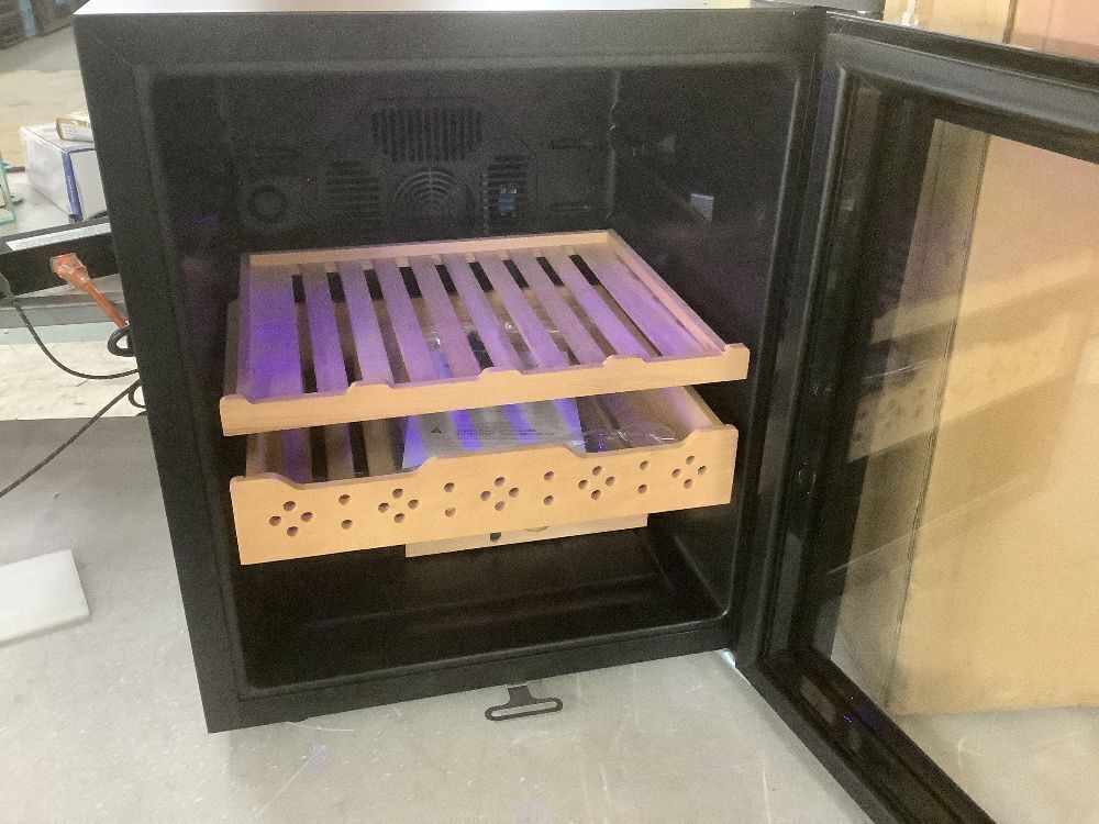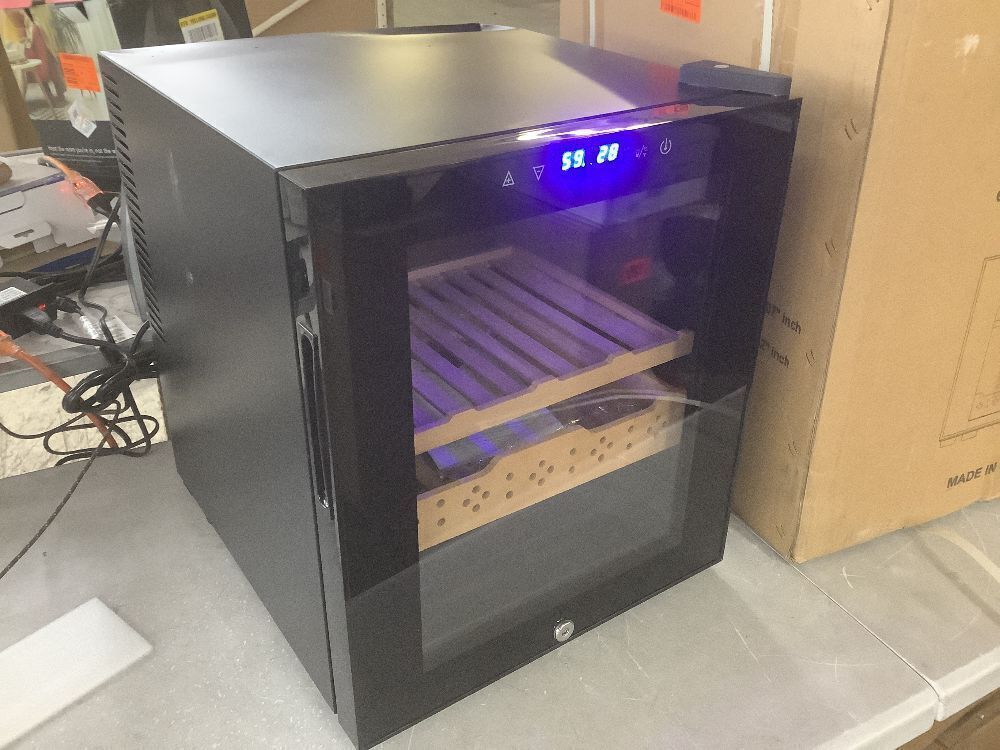 17 in. Single Zone Spanish Cedar Wood Electric Cigar Humidor 50L Storage 300Counts Humidity and Temperature Control in Black - Dented