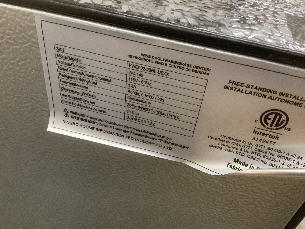 20.3 in. Single Zone 45-Wine Bottles Beverage and Wine Cooler Wine Cooler in Black