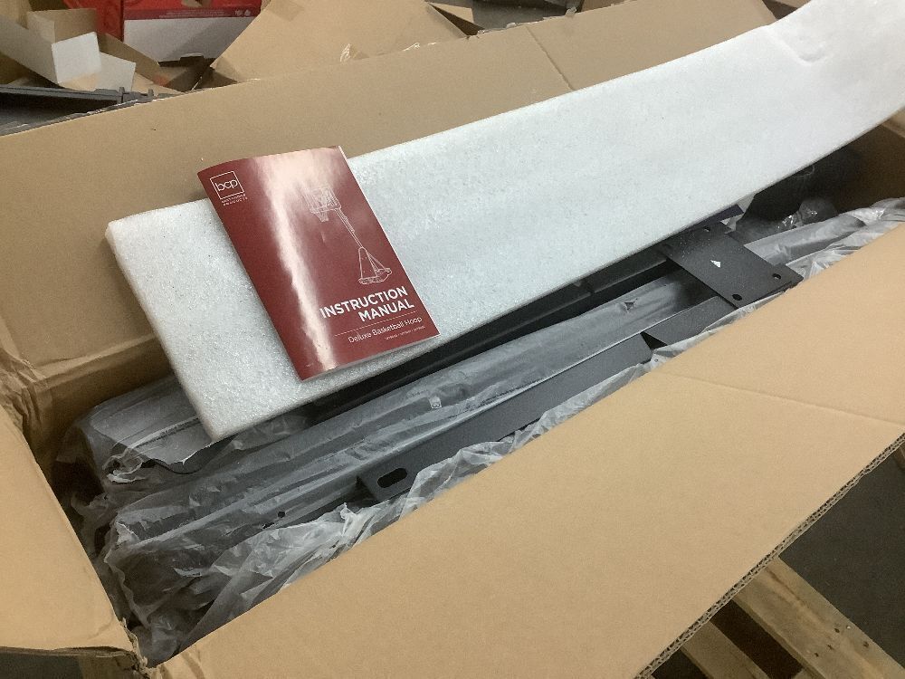Adjustable 4.4-10ft Basketball Hoop, w/ Shatterproof Backboard, Ball Return - Base Gel Bag Busted Open