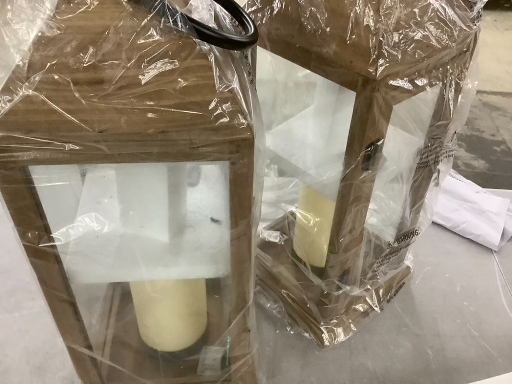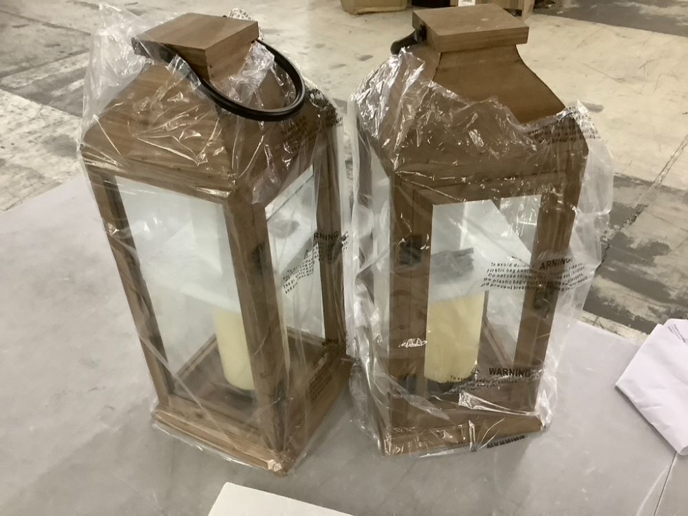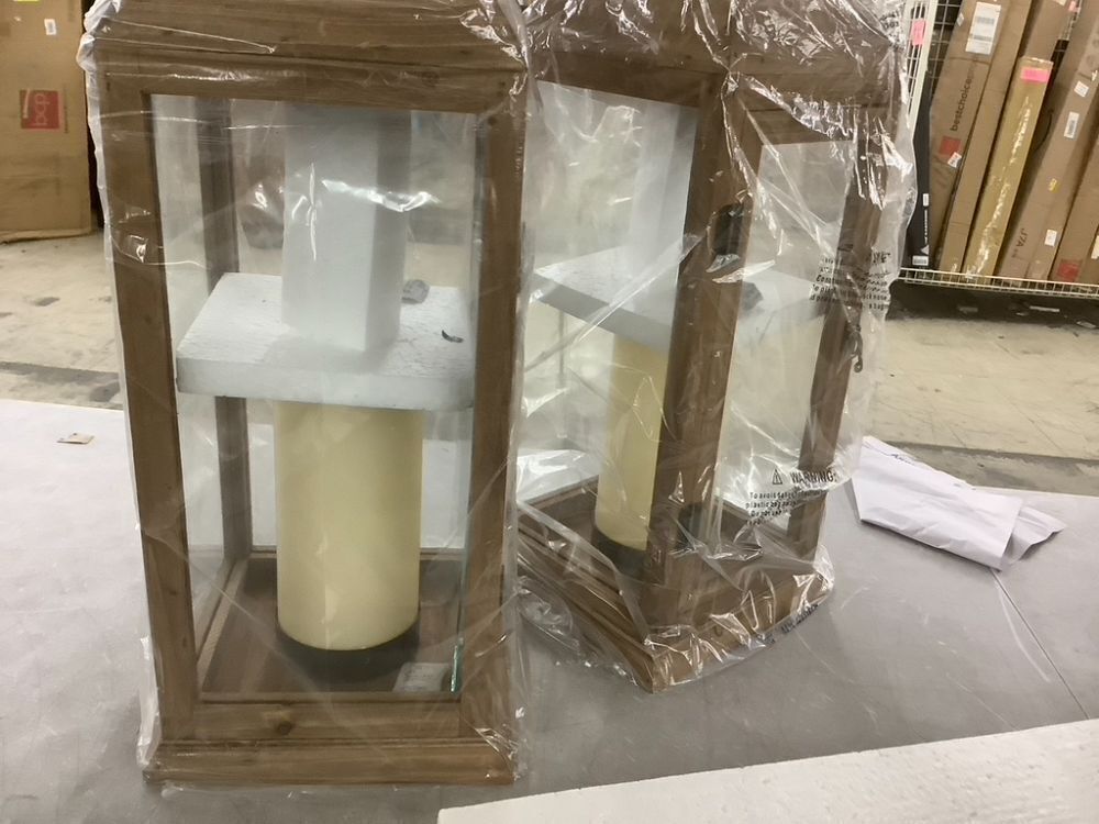 Decorative Lanterns with Flameless Pillar Candles, 22.5", 2 Pack