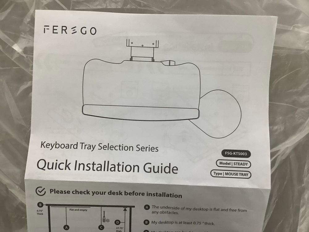 FERSGO Under Desk Keyboard Tray 20" x 11"