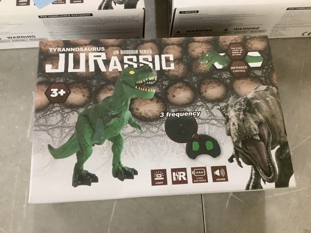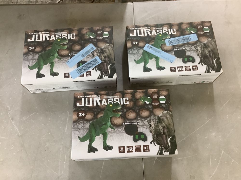 Lot of (3) Remote Control Dinosaur Toy, Electronic RC T-Rex w/ Light-Up LED Eyes, Roaring Sounds