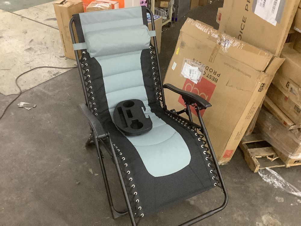 Oversized Padded Zero Gravity Chair, Folding Recliner w/ Headrest, Side Tray