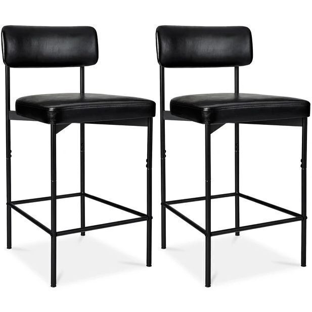 Set of 2 Armless Counter Height Bar Stools, Modern PU Faux Leather Stools