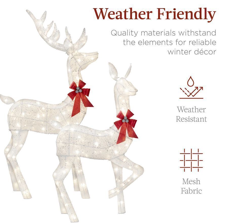 3 Piece Lighted Christmas Deer Set, Outdoor, With Led Lights, New