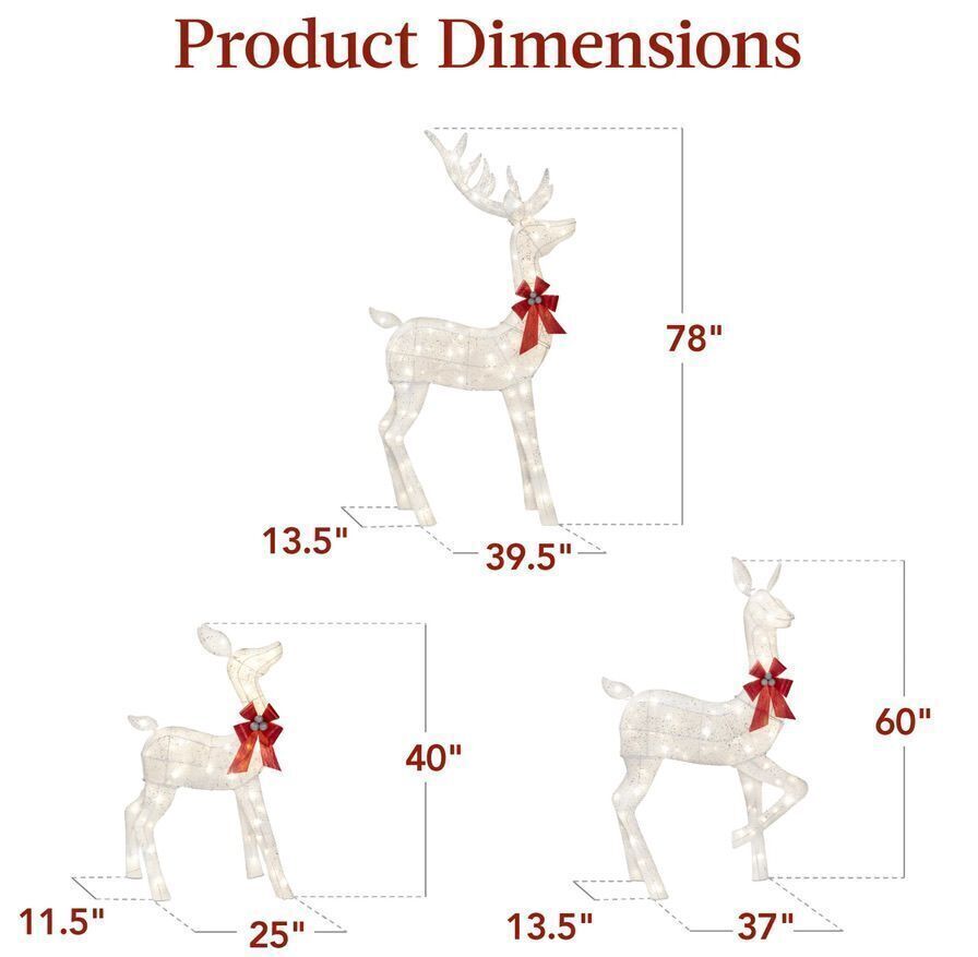 3 Piece Lighted Christmas Deer Set