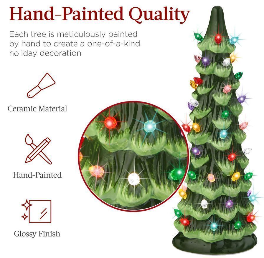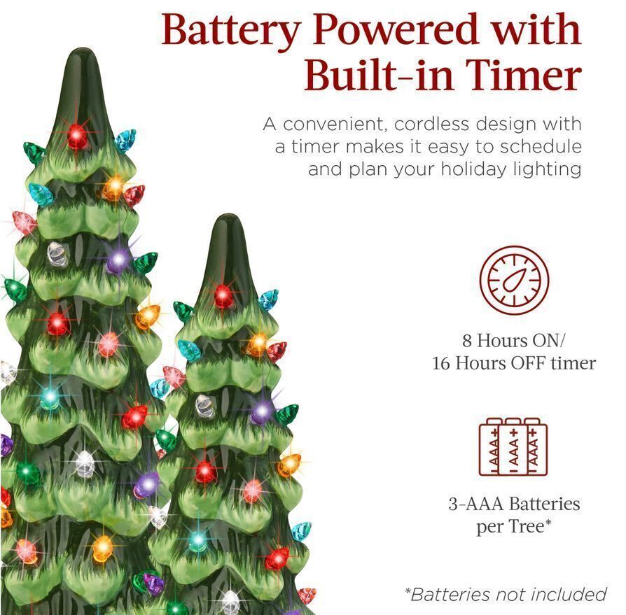 Set Of 3 Pre-Lit Ceramic Tabletop Christmas Trees, New