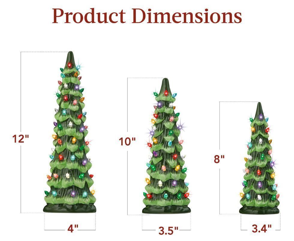 Set Of 3 Pre-Lit Ceramic Tabletop Christmas Trees