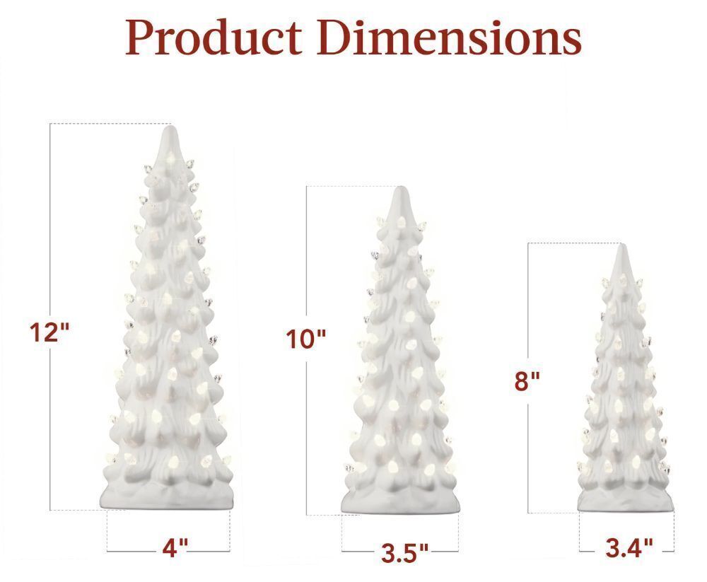 Set Of 3 Pre-Lit Ceramic Tabletop Christmas Trees