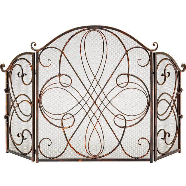 3-Panel Wrought Iron Metal Fireplace Screen Cover w/ Scroll Design - 55x33in