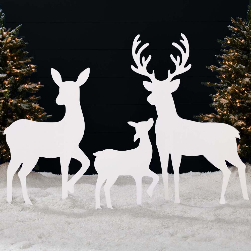 3-Piece 2D Deer Family Silhouette Yard Decoration w/ Buck, Doe, Fawn - 46in