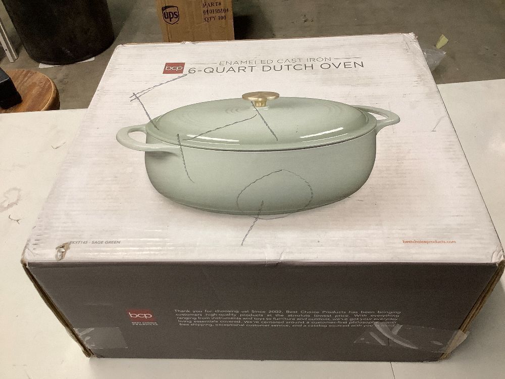Cast-Iron Dutch Oven Kitchen Cookware w/ Enamel, Handles - 6qt
