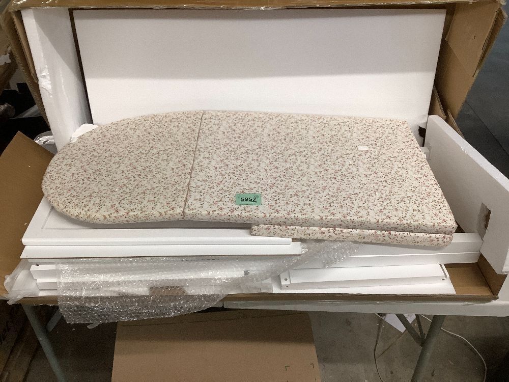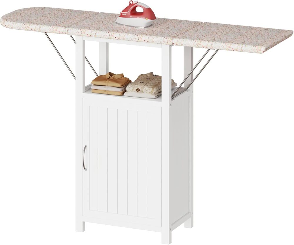 Ironing Board with Storage Cabinet, Folding Ironing Board with Extra Storage, Solid Wood Fold Down Ironing Station with Heat-Resistant Sponge for Small Spaces, Laundry Room