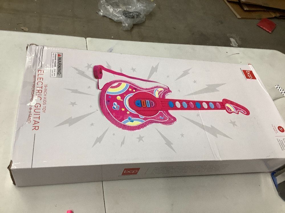 Kids Pretend Play Guitar Musical Instrument Toy w/ Microphone, Stand - 19in
