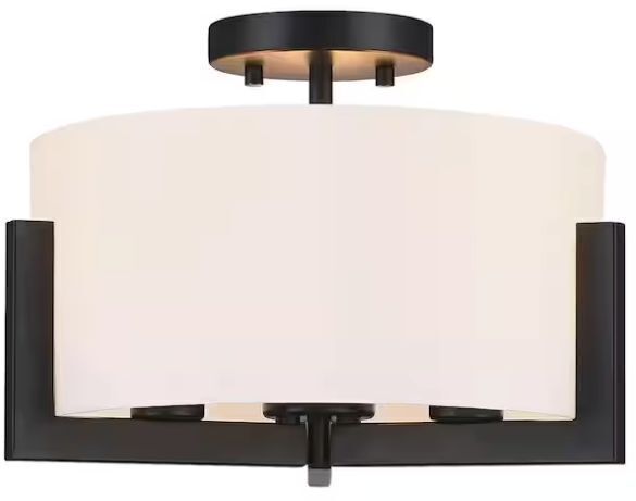 14 in. 3-Light Matte Black Semi-Flush Mount Ceiling Light with Drum Shade