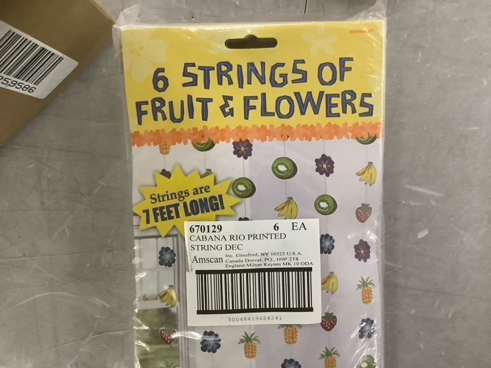 Case of Cabana Rio Multicolor Paper String Cutouts 7' Fruits & Flowers, Approx 85 Packs of 6