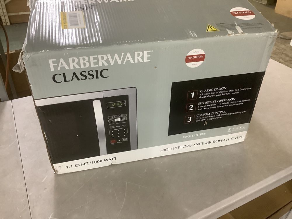 Farberware Classic 1.1 cu. Ft. 1000-Watt Countertop Microwave Oven in Stainless Steel/Black