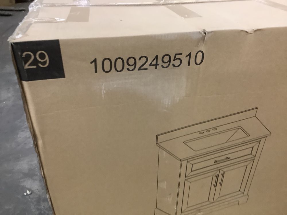 Home Decorators Collection Doveton 30 in. Single Sink Freestanding Weathered Tan Bath Vanity with White Engineered Marble Top