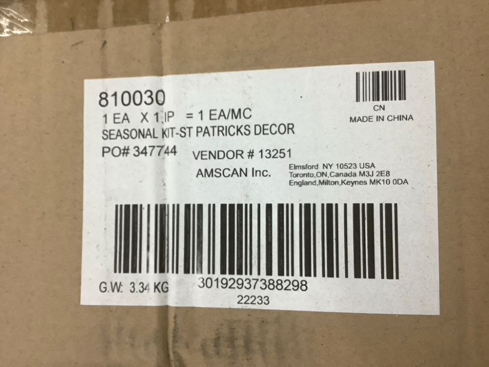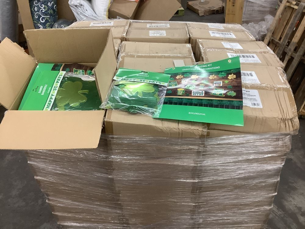 Pallet of (99) Cases of St. Patrick's Day Decorations, Each Case has 10 Banners & 10 Decorating Kits