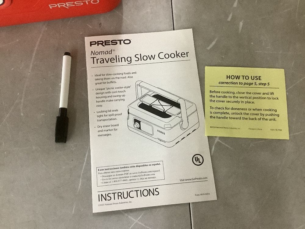 Presto 6 Qt. Nomad-Traveling Red Insulated Slow Cooker with Locking Lid - Missing Dial Knob