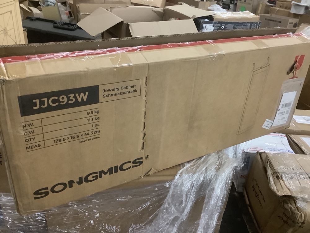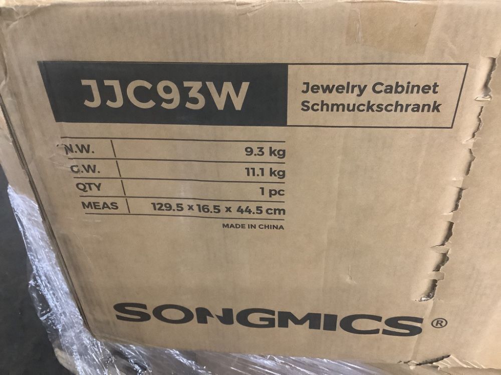 SONGMICS 6 LEDs Mirror Jewelry Cabinet, 47.2-Inch Tall Lockable Wall or Door Mounted