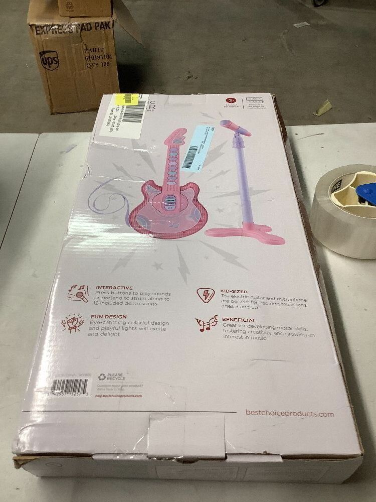 Kids Pretend Play Guitar Musical Instrument Toy w/ Microphone, Stand - 19in