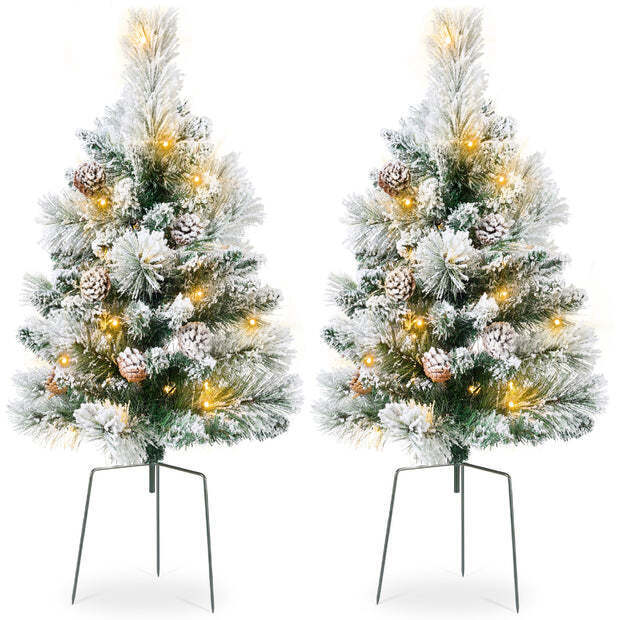 Set of 2 Pre-Lit Pathway Christmas Trees w/ Pine Cones, Timer - 24.5in