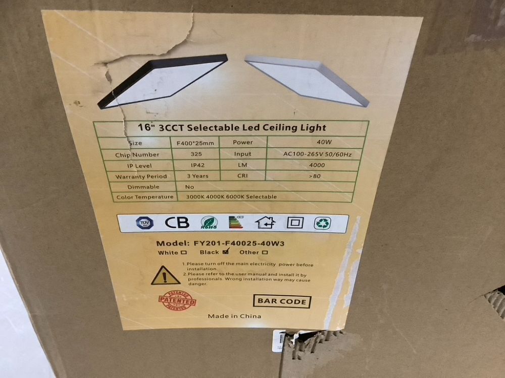 16 Inch Square LED Flush Mount Ceiling Light, 36W 3600LM, 3000K/4000K/6000K CCT Selectable, 2 Pack
