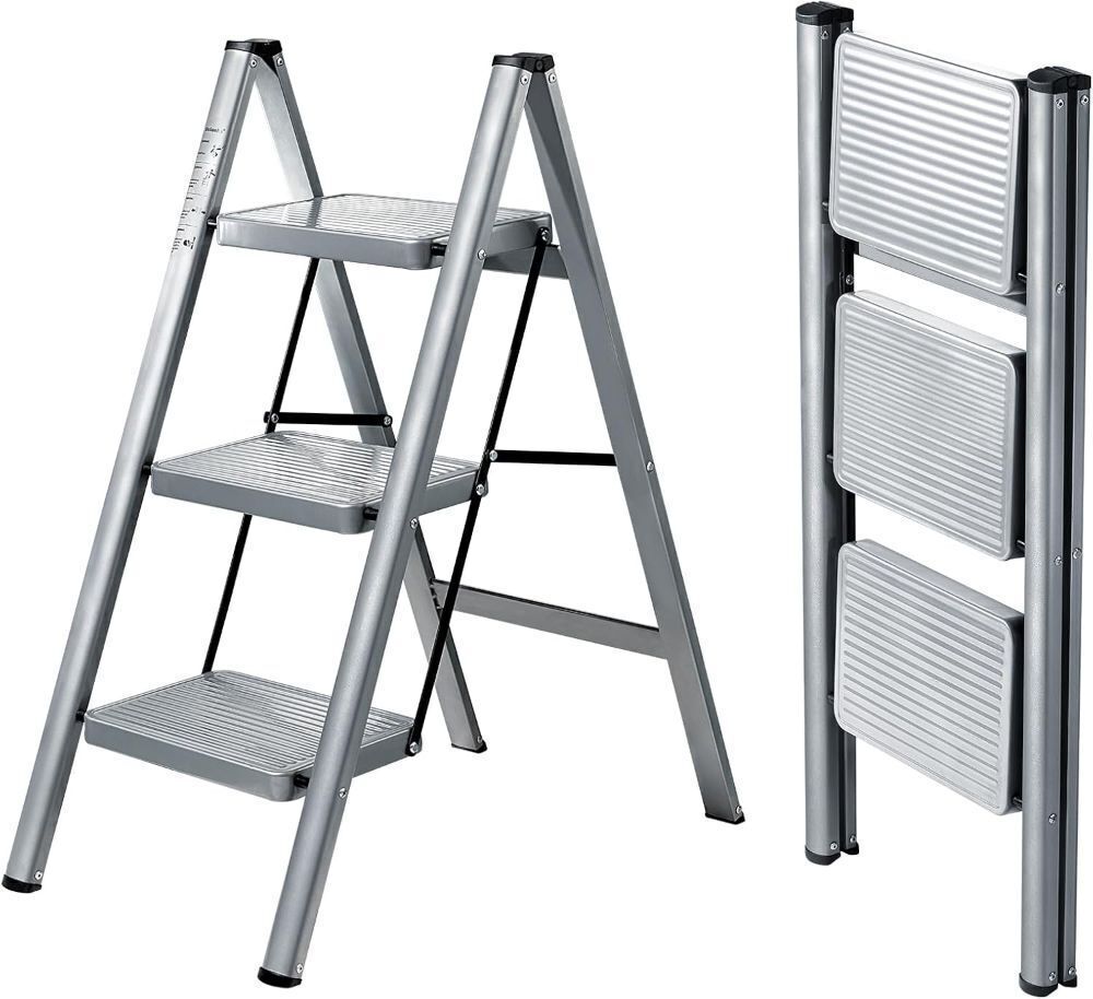 3 Step Ladder, Folding Step Stool with Anti-Slip Wide Pedal