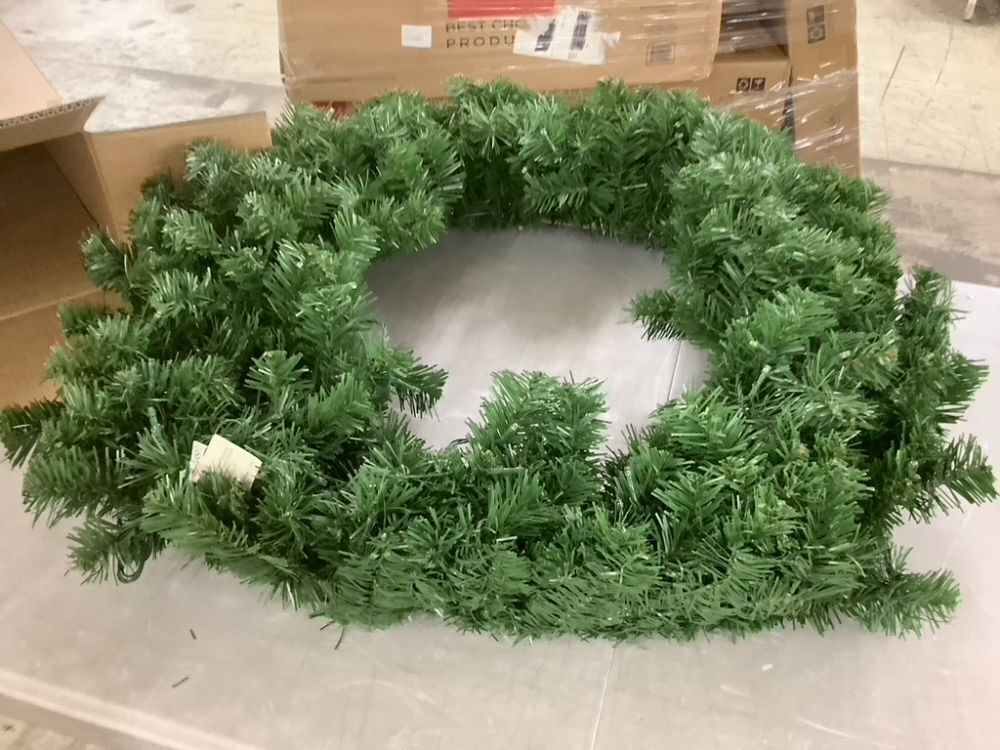 Lot of (2) 36" Pre-Lit Artificial Fir Christmas Wreath w/ LED Lights, Plug-In, PVC Tips