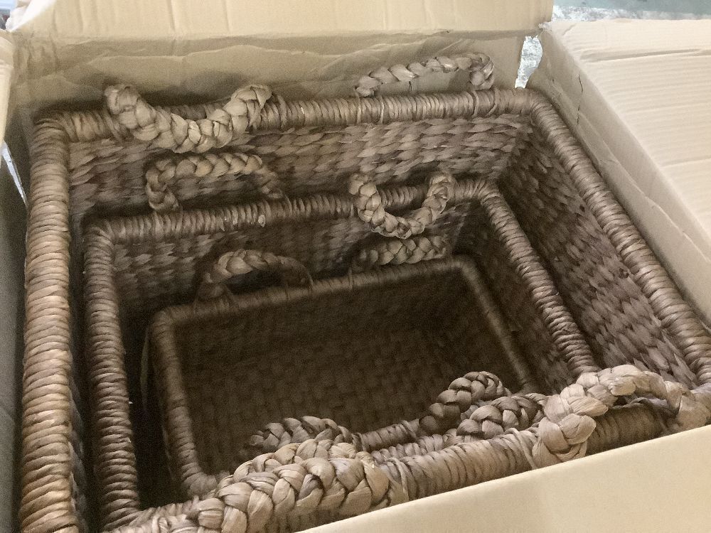3Pc Shelf Baskets, Small, Large & XL Chunky Woven Baskets w/ Braided Handles