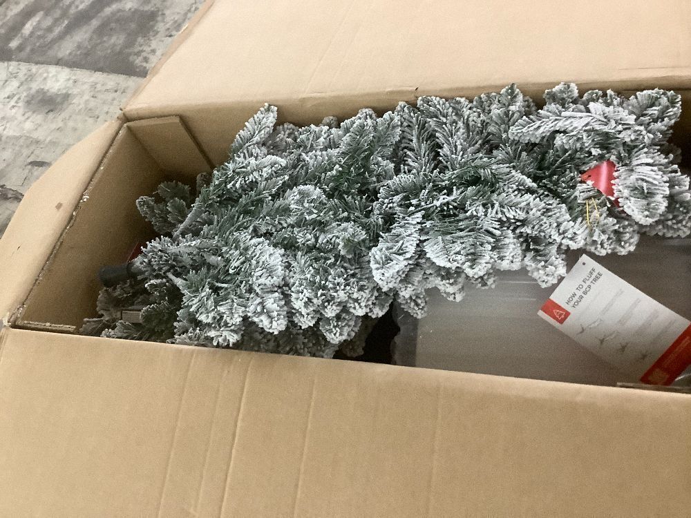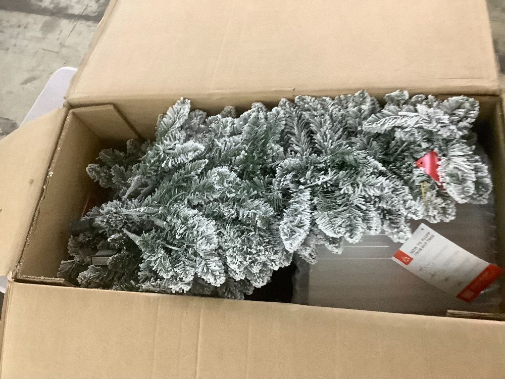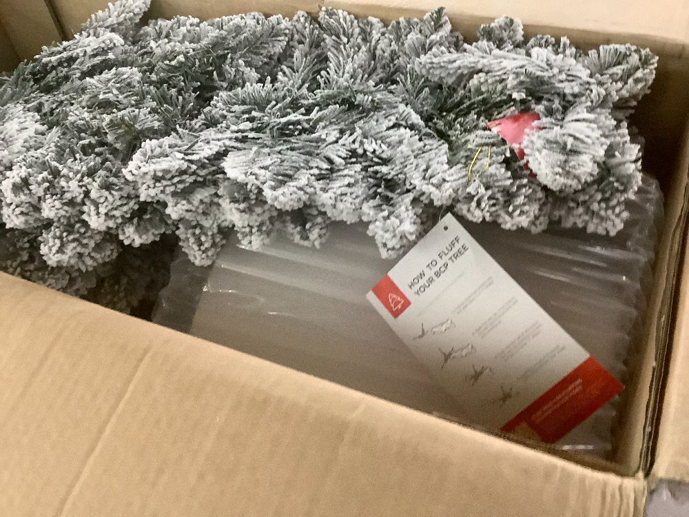 6' Pre-Lit Potted Flocked Christmas Tree w/ Twinkling White LEDs