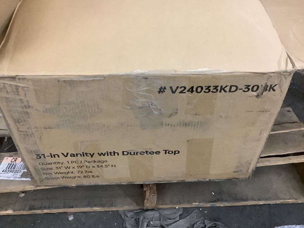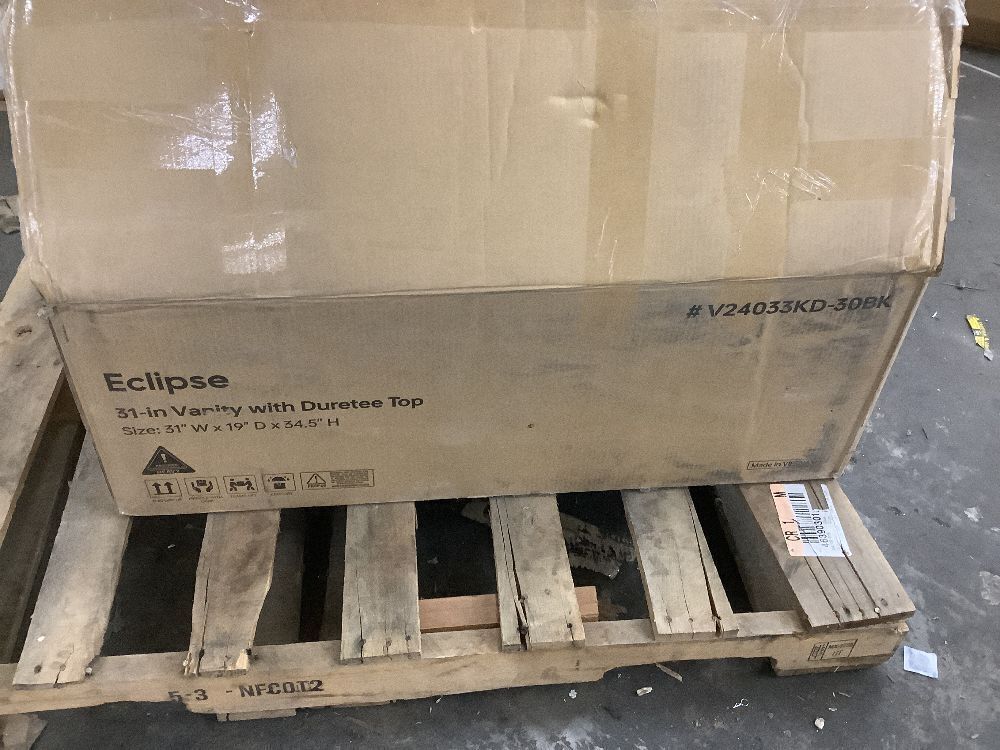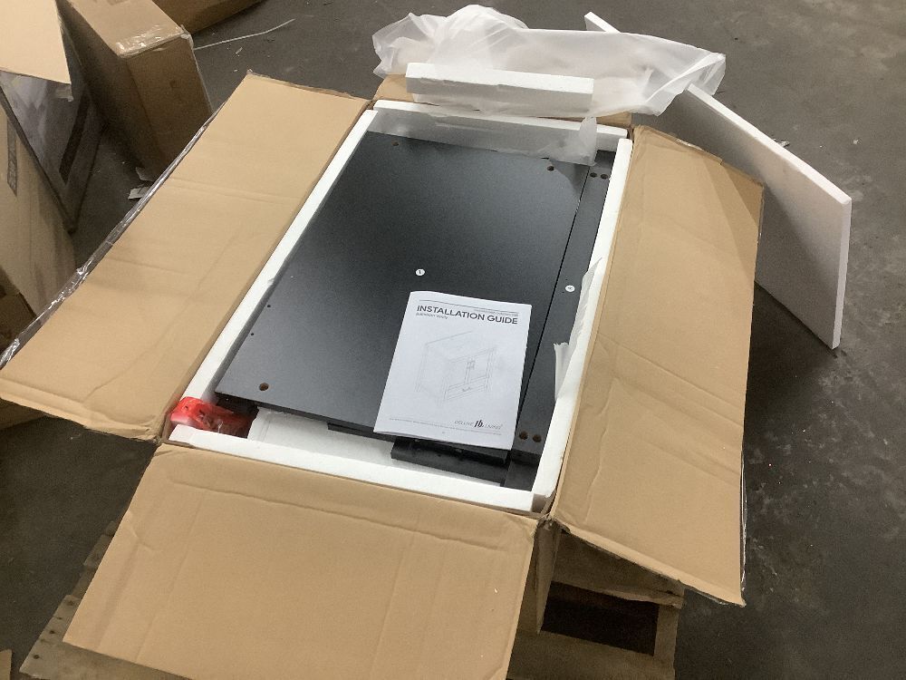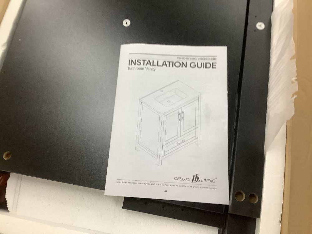DELUXE DL LIVING Raven 31 in.W Single Sink Black Freestanding Bath Vanity with White Engineered Solid Surface Top Unassembled