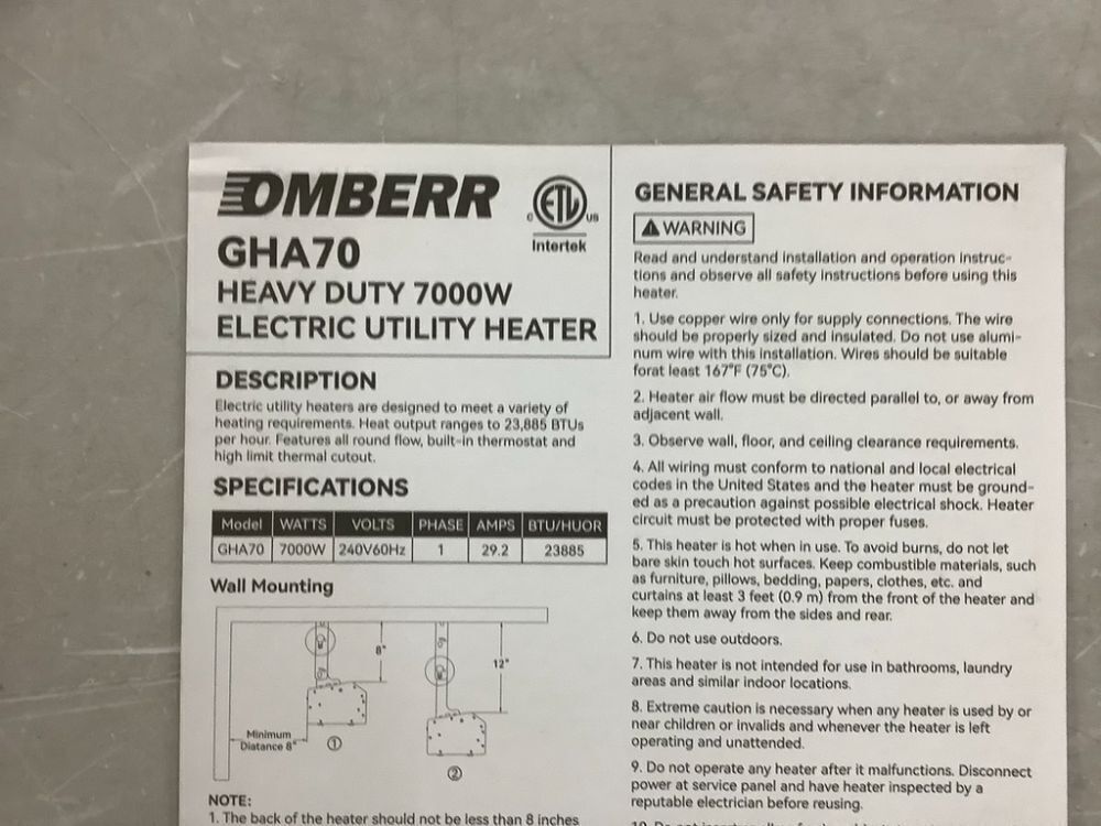 Electric Garage Heater 7000W