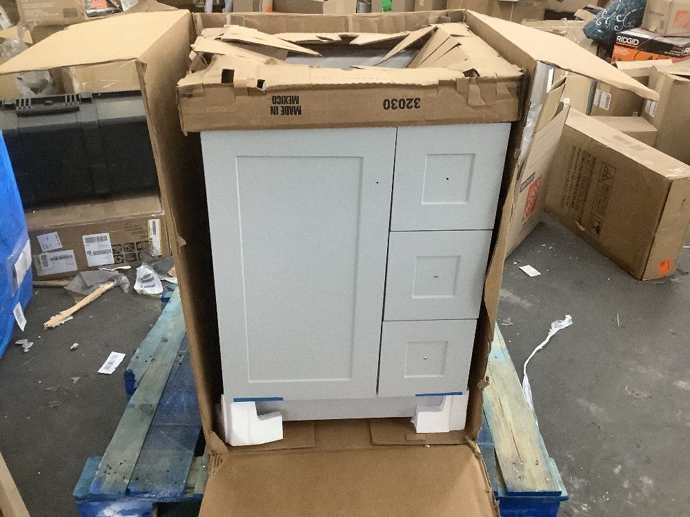 Glacier Bay Bannister 25 in. Single Sink Pearl Gray Bath Vanity with Colorpoint White Cultured Marble Top