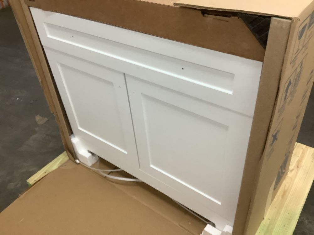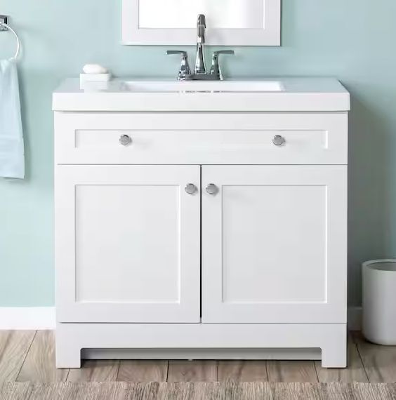 Glacier Bay Everdean 37 in. Single Sink White Bath Vanity with White Cultured Marble Top - Drawer Face Needs Re-Attached