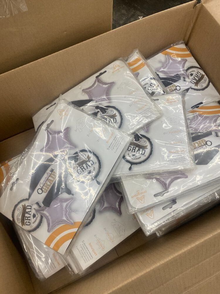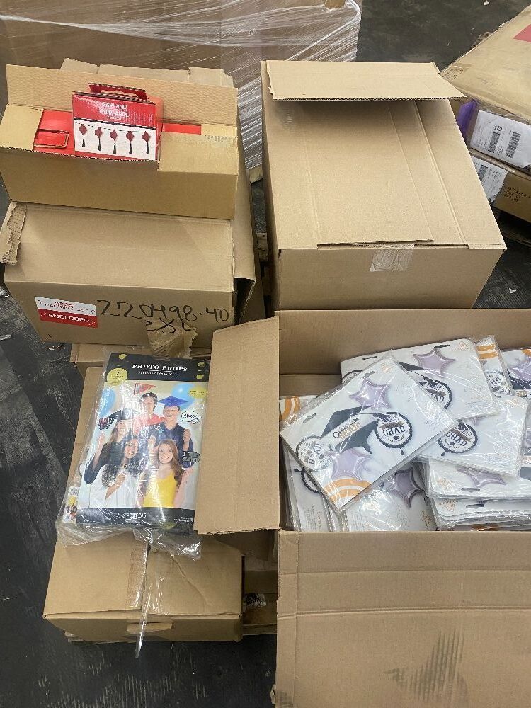 Graduation Pallet - (90) Red Graduation Cap Garlands, (88) Graduation Balloon Bouquet Kits & (1) Photo Props Kit