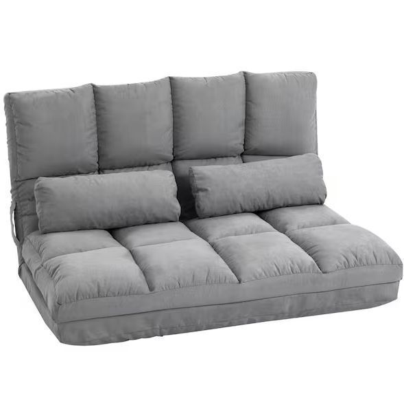 HOMCOM 40.25" Grey Suede Double Floor Sofa Bed with 7 Position Adjustable Backrest