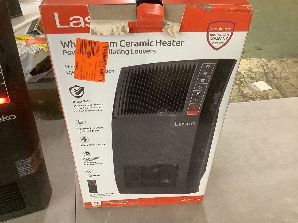 Lasko 1500-Watt 20 in. Black Electric Console Ceramic Space Heater with Tip-Over Switch, Adjustable Louvers, Timer - Missing Remote
