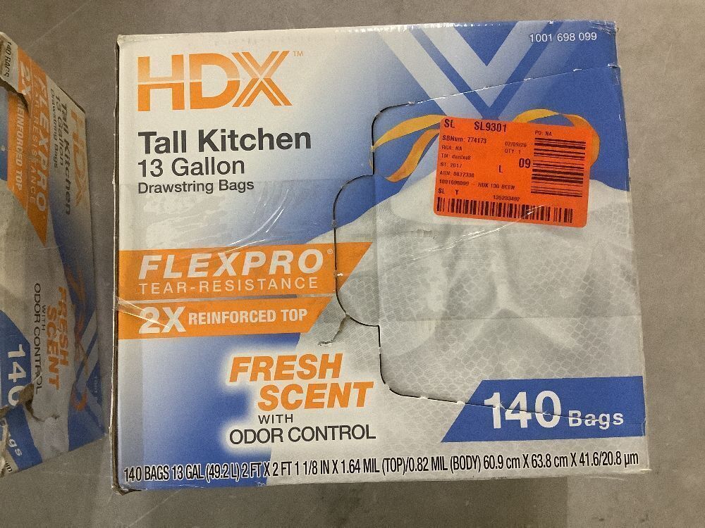 Lot of (2) HDX 13 Gallon Scented Flex Drawstring Kitchen Trash Bags (140-Count)