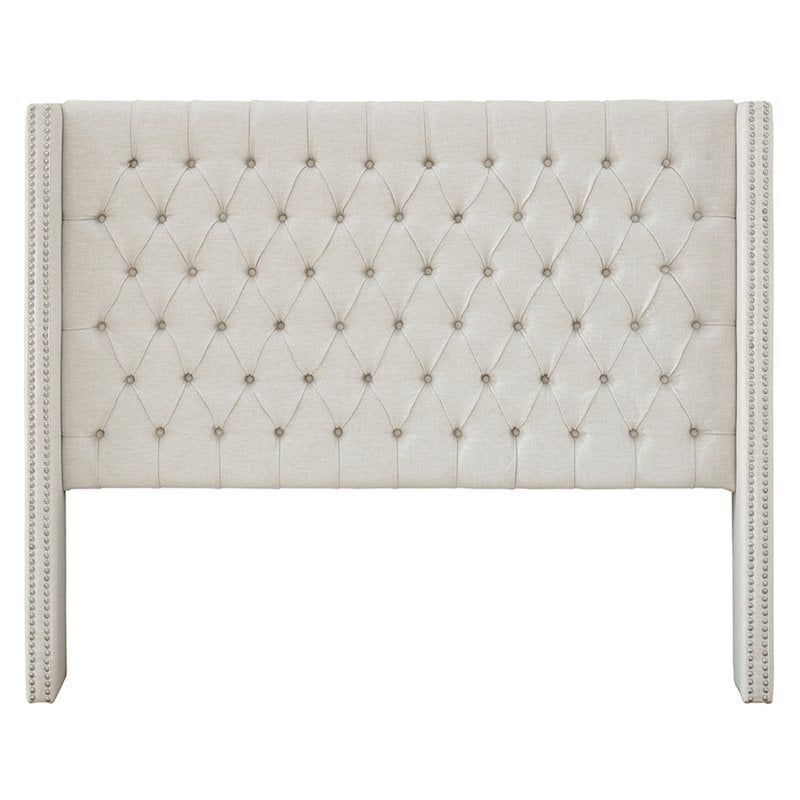 Madison Park Amelia Transitional Fabric and Wood Queen Headboard in Cream