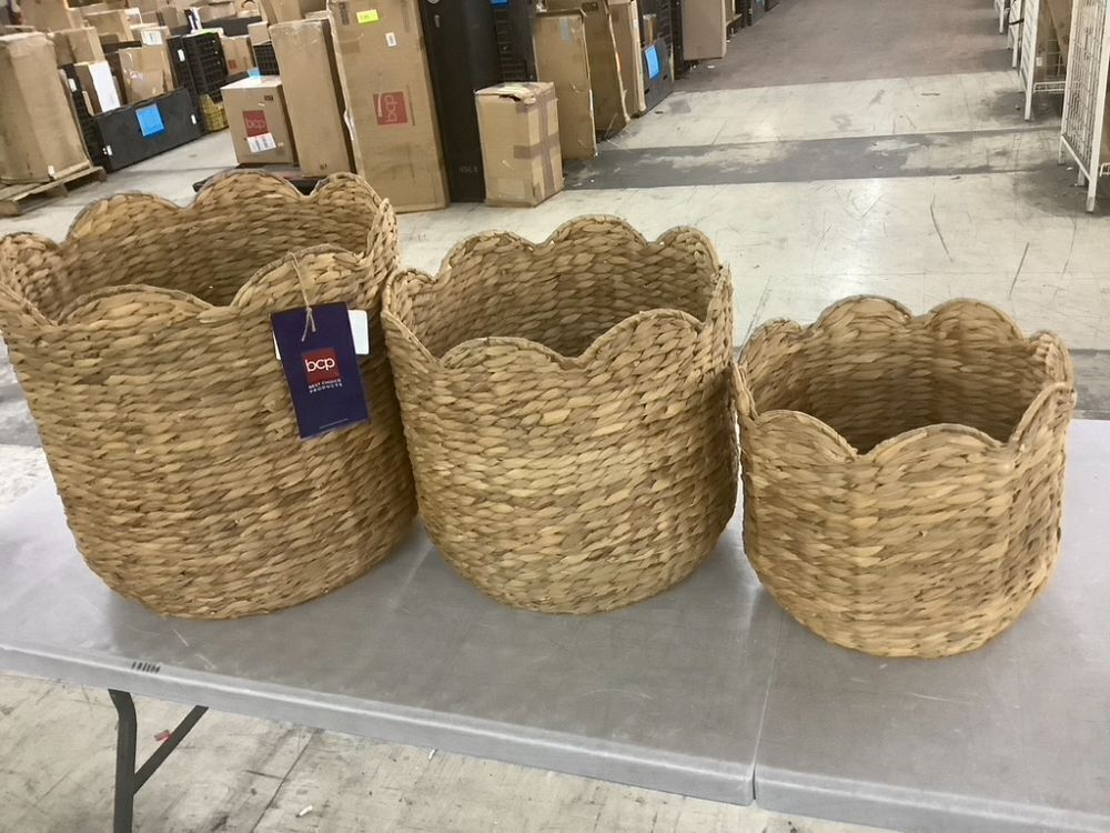 Scalloped 3PC Water Hyacinth Nesting Baskets