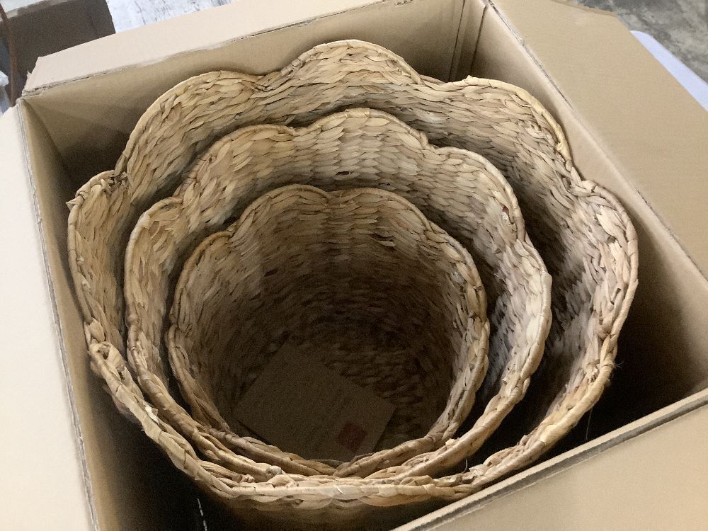 Scalloped 3PC Water Hyacinth Nesting Baskets - Light Damage to 1 Basket