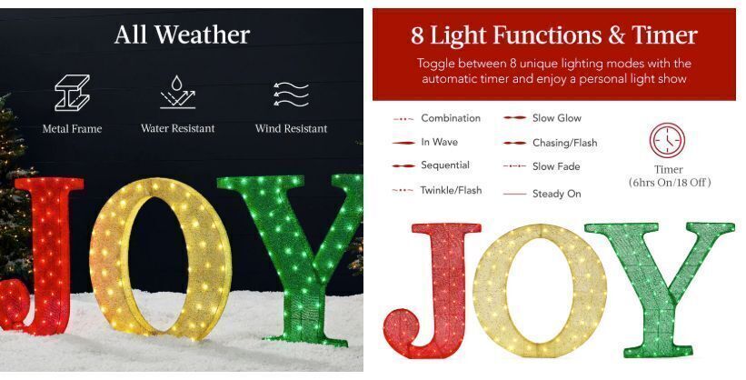 BCP 3 piece 3D Lighted Christmas JOY Yard Decoration with 150 LED Lights 32"