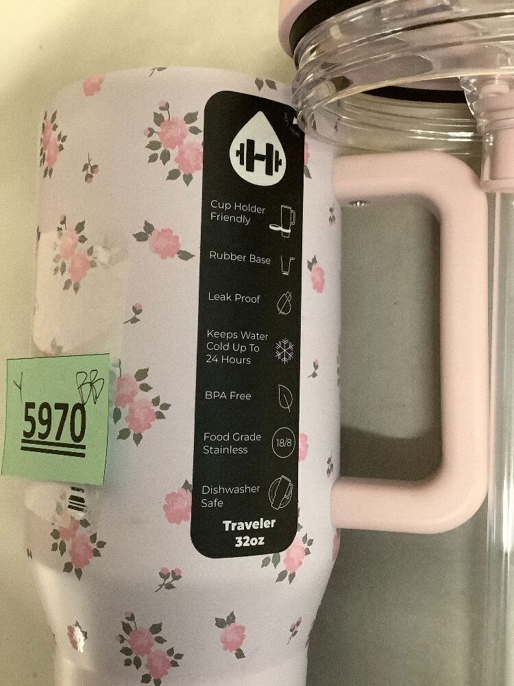 32 oz Water Bottle with Handle & Flip Straw - Fits in Cup Holder, Leak Resistant Tumbler-Reusable Insulated Stainless Steel & Rubber Base - Gifts for Women & Men (No Box)