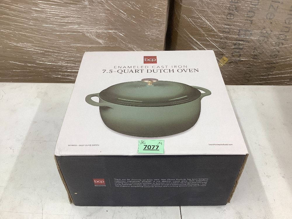 Cast-Iron Dutch Oven Kitchen Cookware w/ Enamel, Handles - 7.5qt